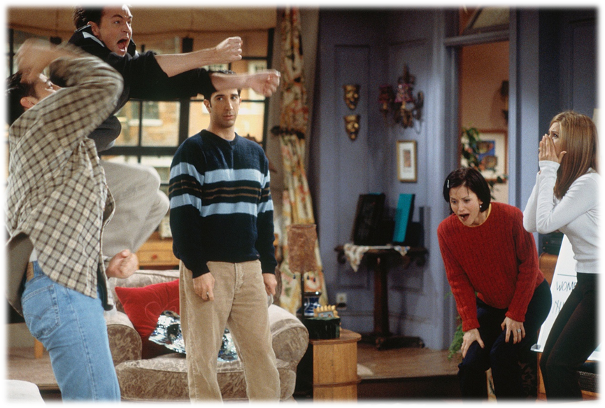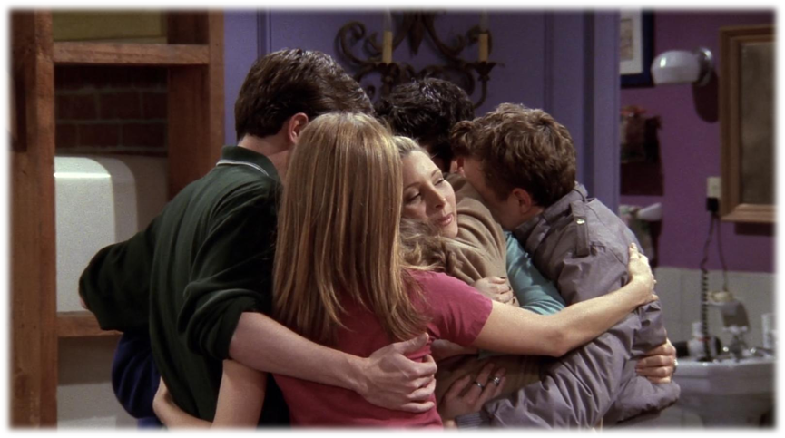 לאחר תחרות הטריוויה, בעוד מוניקה ורייצ'ל רבות בצעקות עם צ'נדלר וג'ואי בדירה החדשה-ישנה שלהם, פיבי יצאה מחדר האמבטיה והכריזה על הבשורה המרגשת שהיא בהיריון. הכל נשכח באותו הרגע והחברים התאחדו בחיבוק קבוצתי ומרגש.